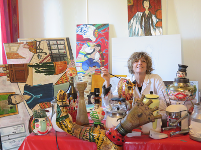 Peintre et plasticienne, elle réalise depuis plus de 15 ans des sculptures en pâte à papier et en résine à partir d’objets hétéroclites mis au rebut. Elle redonne vie à ces objets abandonnés en créant des personnages inscrits dans